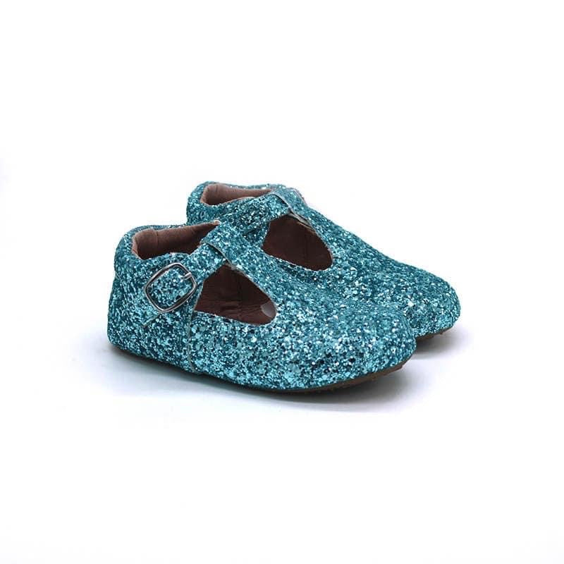 Blue Glitter T-Straps