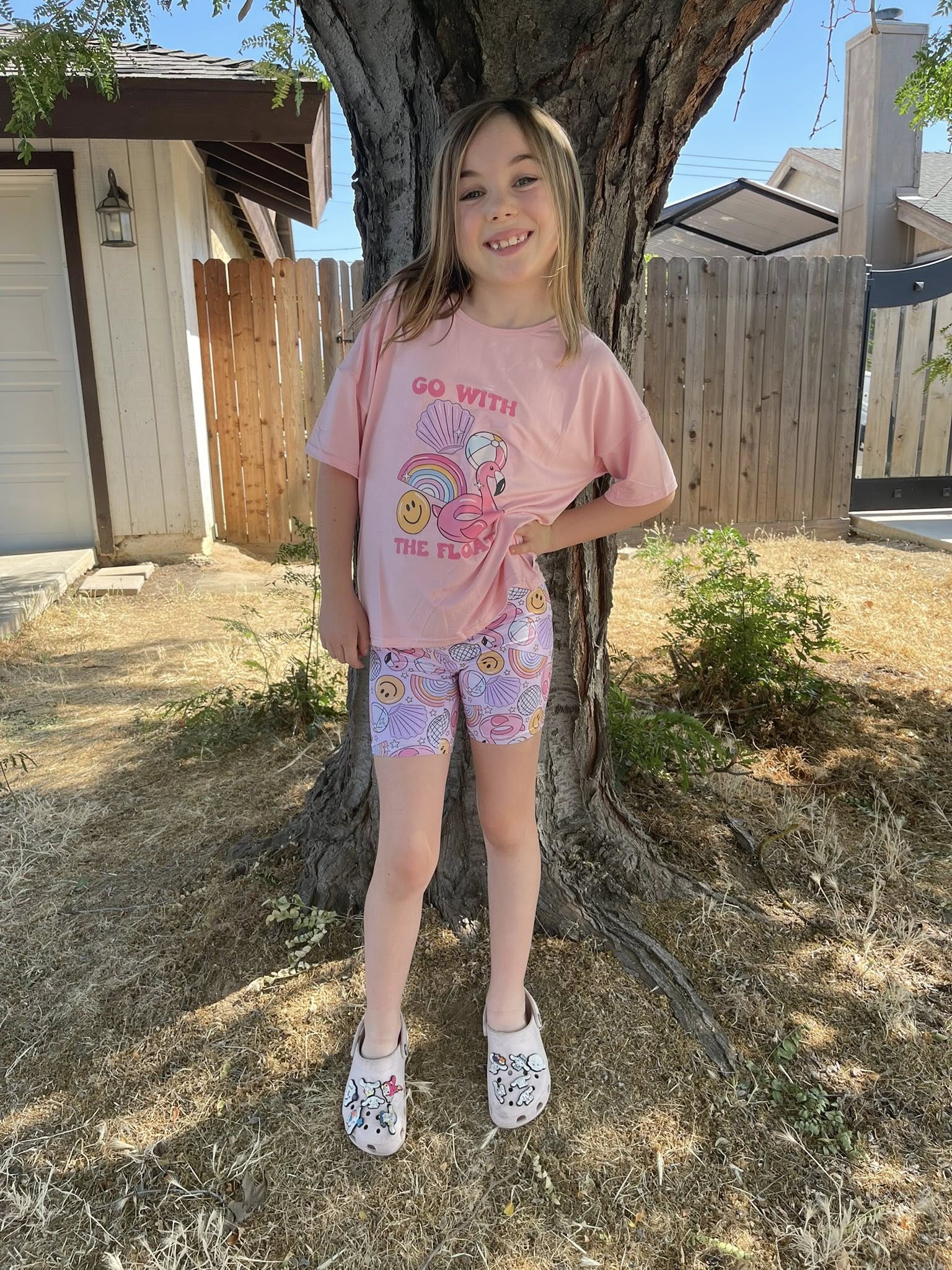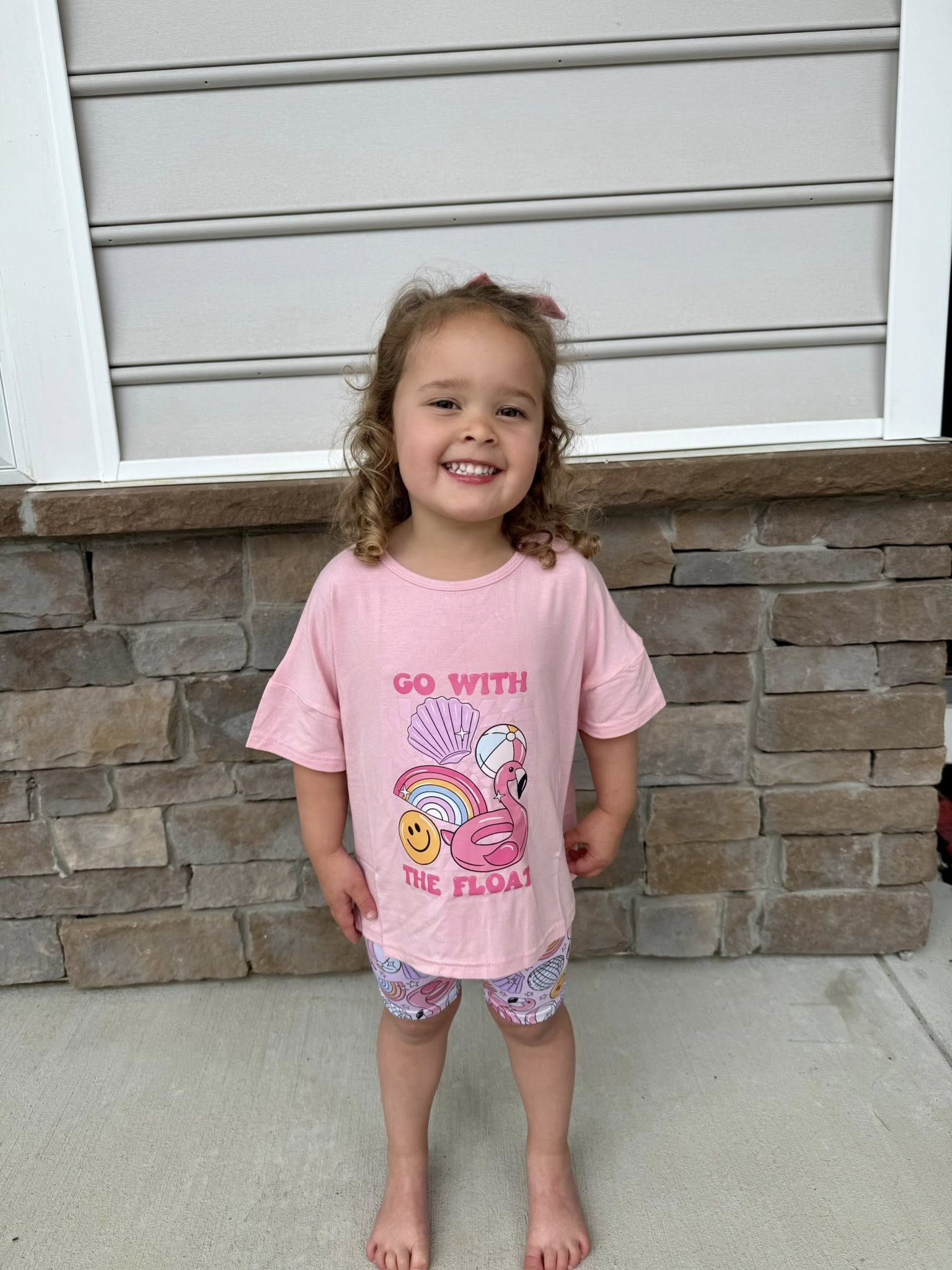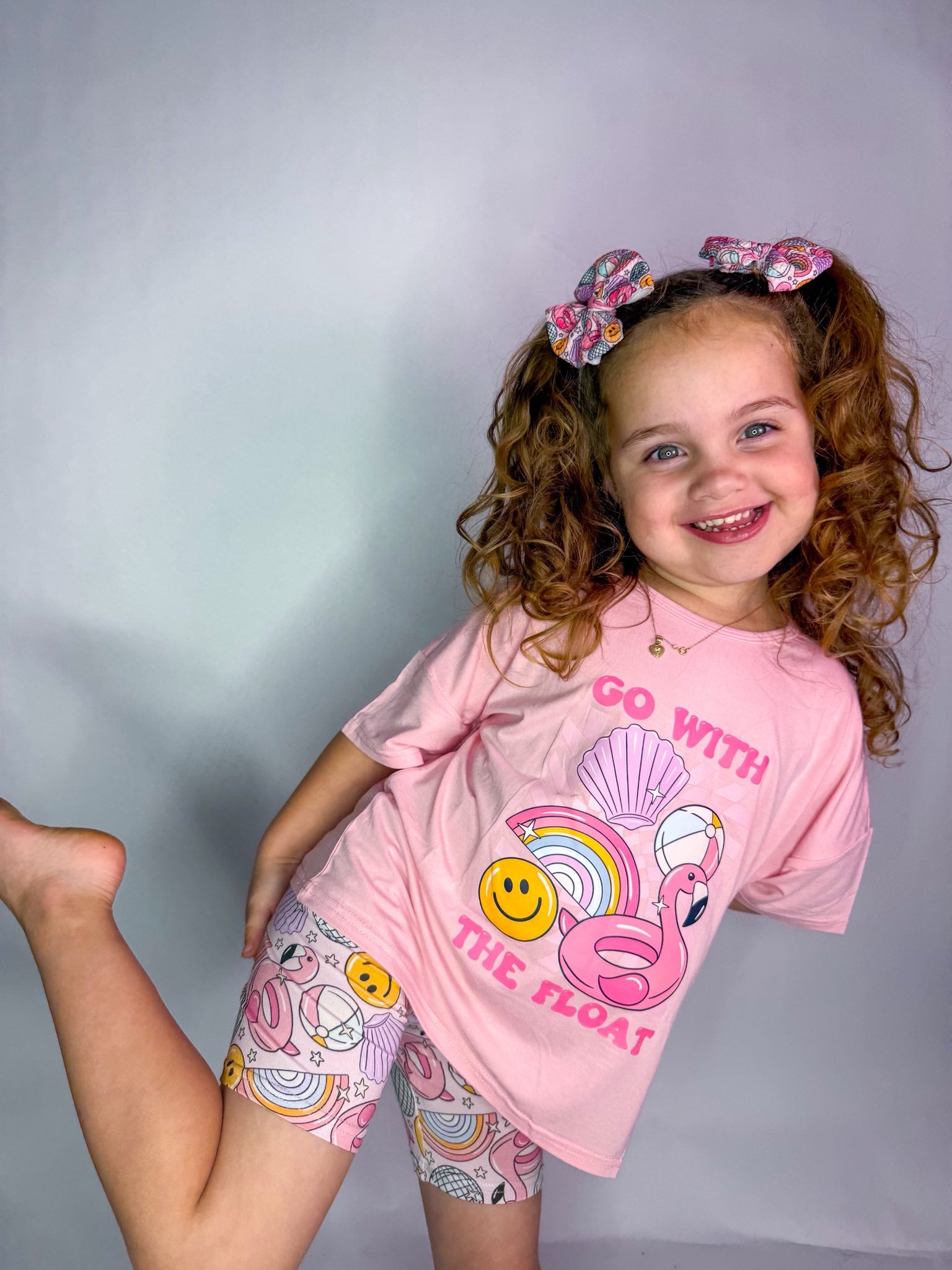 Pink Go With The Float Tee + Biker Set